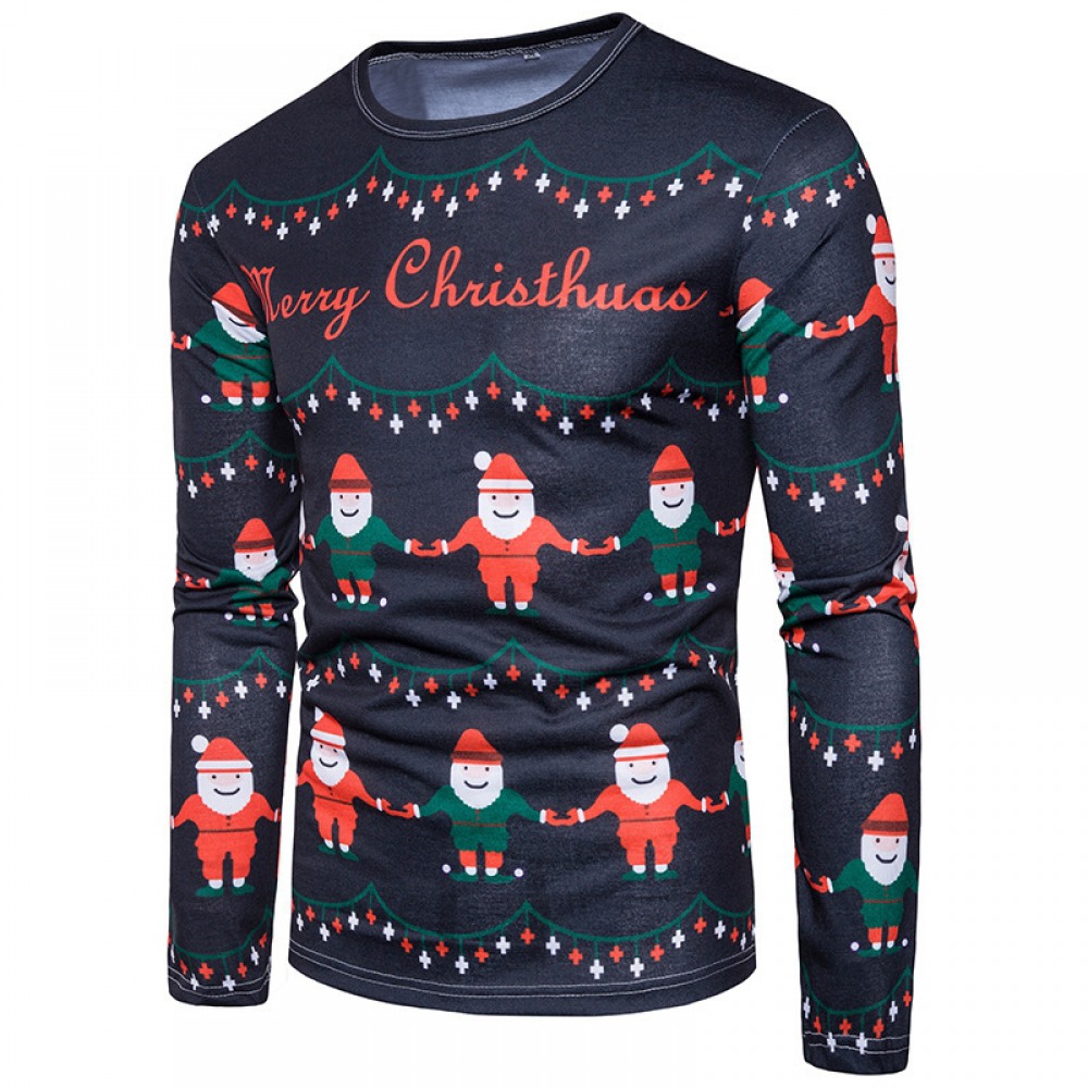 New 3D Personality Printing Fashion Men's Christmas Long-Sleeved T-Shirt
