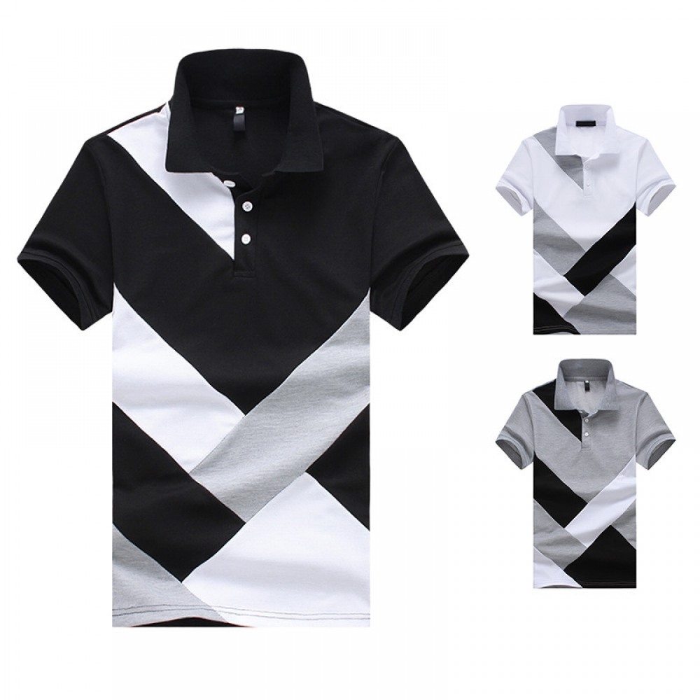 Men's European Size Stitching Short Sleeve Polo