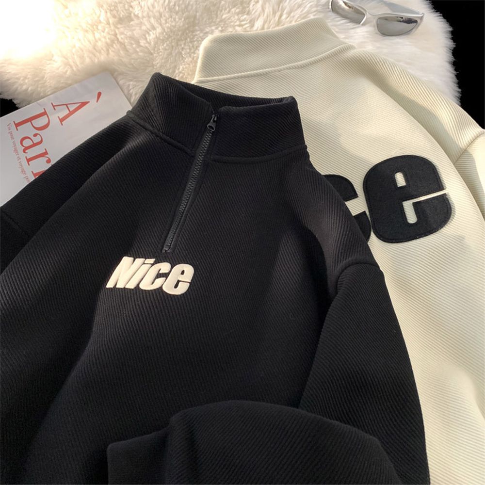 Men's Fleece-lined Half-zip Stand Collar Sweatshirt Hoodie