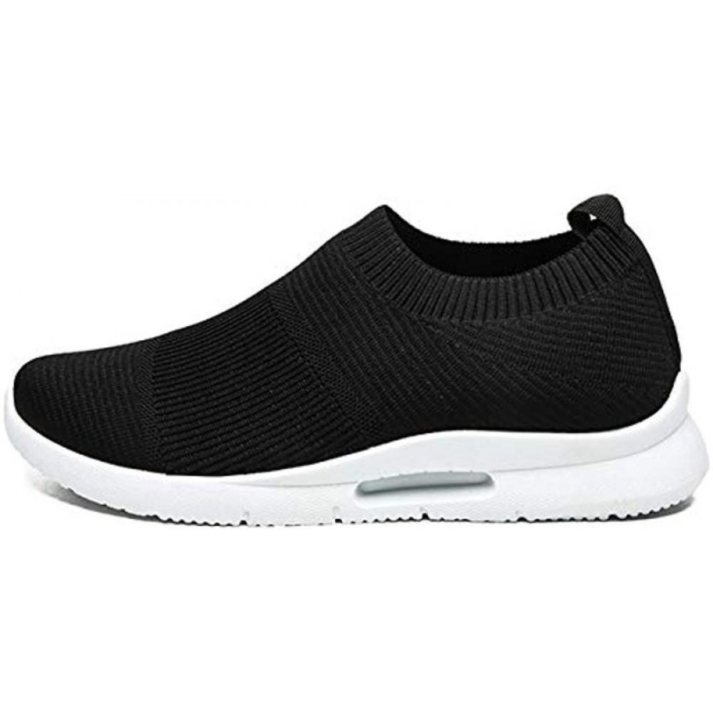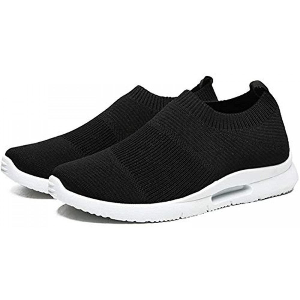 Mens Running Sneakers Slip On Walking Shoes Fashion Breathable Sneaker Mesh Soft Sole Casual Athletic Lightweight Black-White