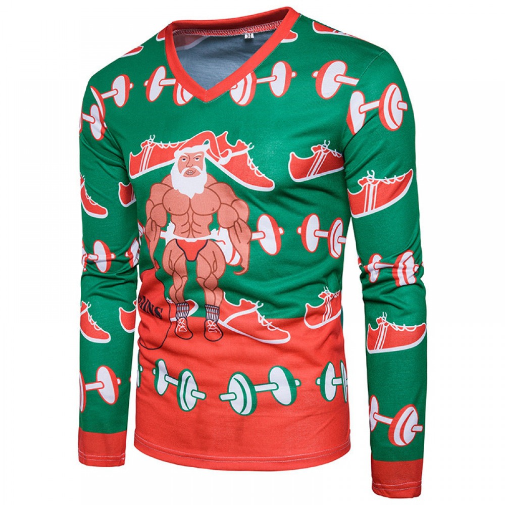 New 3D Personality Printing Fashion Men's Christmas Long-Sleeved T-Shirt